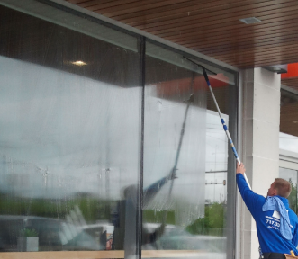 Streak-free exterior window cleaning for multi-story buildings, storefronts, and office properties.